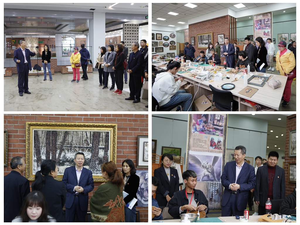 党员干部们首先来到旅发大会特色景点——黑龙江大桥公园,遥望对岸俄罗斯的城市风光,领略黑河全新风貌,了解黑龙江大桥桥头区域的载体功能和城市服务功能。大家坚信,作为促进边境地区繁荣发展新桥梁、巩固和深化传统友谊新纽带的黑龙江大桥,一定能够更好地服务国家“一带一路”战略及黑龙江省“中蒙俄经济走廊-龙江陆海丝绸之路经济带”建设。在大黑河岛黑河学院中俄科技文化艺术产业园,党员们进一步了解了产业园的创建过程、目前状况及未来发展方向。大家认为,在学校产学研融合理念的指导下,这座集全校科技资源和人才优势建设的北疆特色产业园区,必将显示出强大的社会服务功能,这也让全体党员进一步明确了方向、坚定了信心、鼓足了干劲。全体党员还参观了位于产业园的我校美术与设计学院民间工艺与旅游产品工作室,在陶丹丹老师的介绍下,党员们了解了这一张张树皮是如何在陶老师的手中化腐朽为神奇,变身为灵动精巧、美观大气的艺术品。副校长丛喜权鼓励工作室的全体人员,要借助学校的资源优势,把桦树皮工艺作品打造成黑河的旅游品牌产品,在推动中俄文化产业发展的同时,加快科技成果产业化进程。