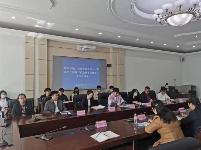 为落实党中央、国务院关于高校毕业生就业工作决策部署,抓住毕业生就业工作关键期,加快工作进程,全力促进毕业生顺利就业,深入开展我校2023届毕业生就业“百日冲刺”行动。5月31日,我校与市工商联、市就业服务中心举行“校企携手促就业”合作对接会。黑龙江红河谷汽车测试股份有限公司、黑河市坤鹏生物科技有限公司等十余家企业与各学院部分毕业生参加会议。