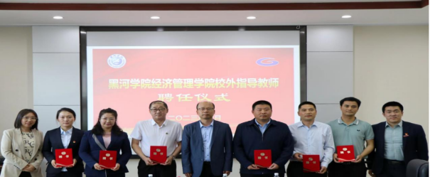 期间,举行校外导师聘任仪式,为黑河市财政局、黑河市工商联、黑河市中小企业协会、江海证券的6名受聘导师颁发聘书,新聘任导师表示将充分利用好政府、企业资源和自己所学,在学生学习、职业发展规划、创新创业等方面提供支持,为经济管理学院的发展贡献积极力量。